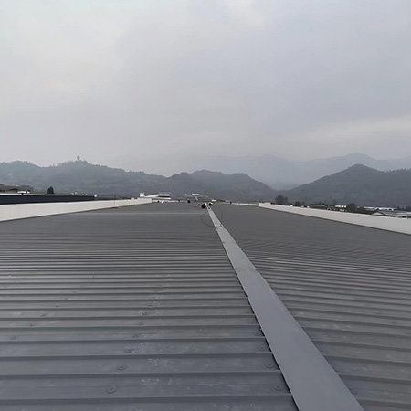 海美防水瓦以鋼板為基板,表面貼覆具有防水防腐功能的TPO/PVC卷材(熱塑性聚烯烴類防水卷材),是海美金屬推出的新一代防水防腐屋面建筑材料。海美防水瓦主要特點就是在各類環境下不易生銹不易漏水,使用熱風焊接進行相連,覆蓋全部裸露的縫隙,在使用過程中可以達到蓄水不滲透的效果,防水效果好,同時還有較好的抗風揭性能和耐老化性能,為鋼結構建筑屋面提供了長久的防護。